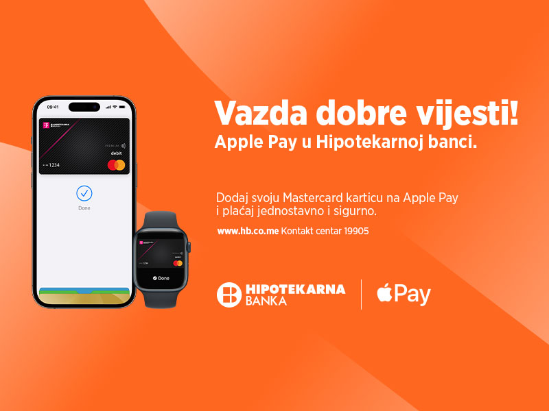 Podgorica, 5. oktobar. 2022. — Hipotekarna banka, u saradnji sa kompanijom Mastercard, od danas svojim korisnicima donosi Apple Pay, siguran, bezbjedan i privatan način plaćanja koji pomaže korisnicima da izbjegnu davanje svoje platne kartice nekom drugom licu, dodirivanje fizičkih tastera ili razmjenu gotovine — i koristi moć iPhone uređaja u cilju zaštite svake transakcije.