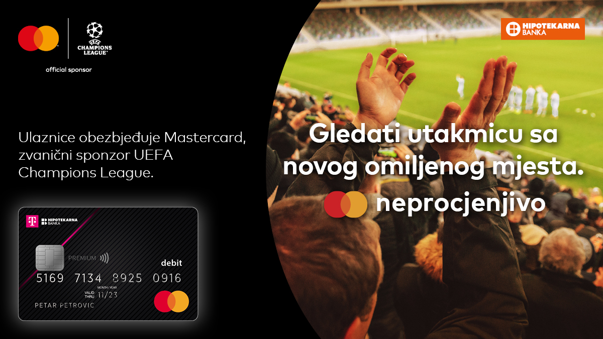 U periodu od 25. marta do 25. aprila plaćajte svojom Mastercard karticom Hipotekarne banke i svaka vaša transakcija koja prelazi 10€ ulazi u bubanj i povećava vašu šansu da osvojite putovanje za dvije osobe na ovaj jedinstveni sportski događaj.